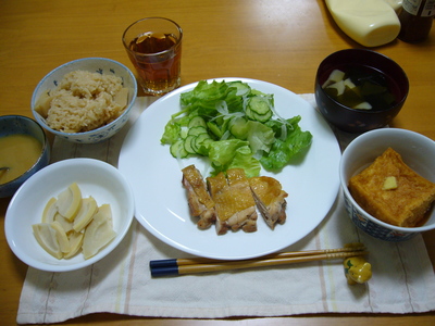 あとは、鶏肉のソテーと、厚揚げ。