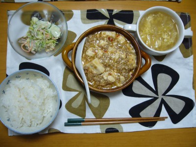坊ちゃんのために、豆板醤を後入れにしているのですが、そのせいだけではないと思うのですが、まだまだ改良の余地あり。もうちょっとコクを出したいんだけれどな~。