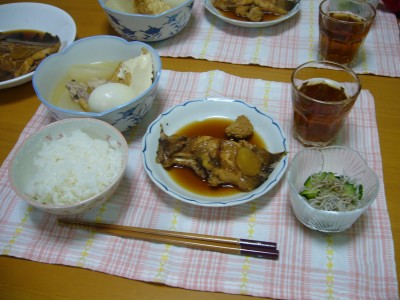 おでん風煮物。厚揚げがくずれちゃってます・・汚いなぁ(^_^;)。