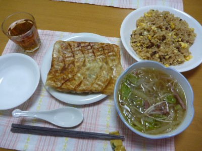 餃子は買ったものなので、メインはチャーハンかも。